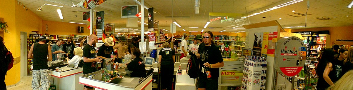 Nicht nur auf der Bühne und auf dem Gelände war die Hölle los, hier der ortsansässige EDEKA-Markt.